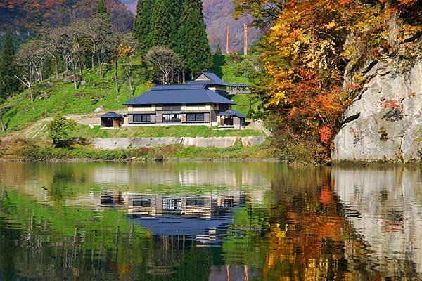 只見川沿いのすばらしい景勝地に、1200年の歴史を持つ温泉施設を再生する計画である。基本的に敷地の形状はできる限り変えず、既存建物の面影を色濃く残し、町民のみなさんが慣れ親しんだ山の懐にとけ込む原風景のような外観とした。内装は外観同様土間仕上げの玄関、地元杉板張りの低い天井と床、昔懐かしい木造校舎のような階段等、自然素材を活かし、現代人が求めている「癒し」を随所にデザイン配慮した。 |