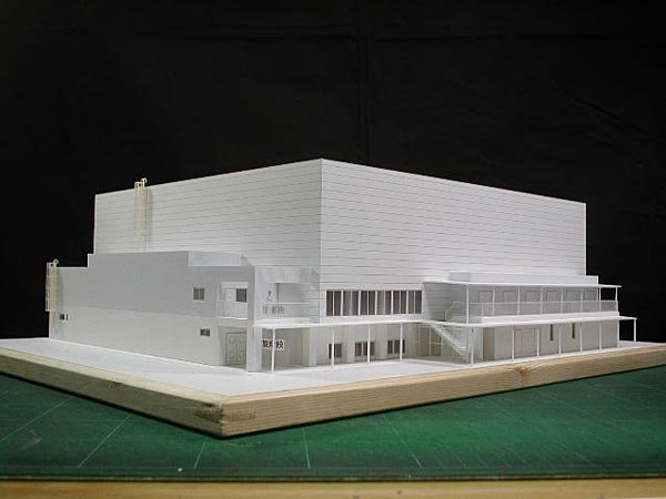 スポーツのスペシャリストとして世界で活躍することを目指した国際スポーツ科のための新体育館。バトミントンの公式試合も可能。通風・採光をスタディー模型で何度も確認し、快適性を考慮しながら公式競技が可能なスペックも満足させた作品となった。 |