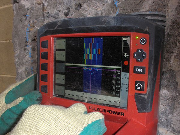 コンクリートの非破壊探査機「PS1000」を使用した鉄筋探査を行っております。