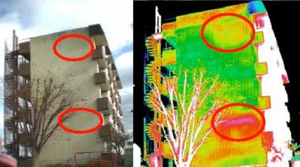 また、外壁に於いては赤外線カメラを用いて、外壁調査を行い、劣化部分の範囲を特定し報告した。
